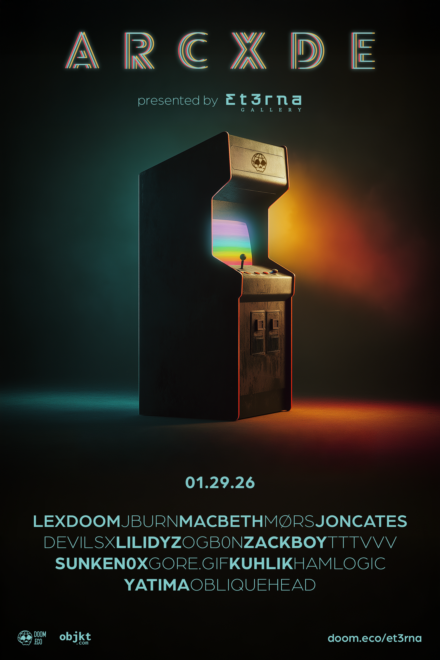Presented by Doom.eco, Et3rna is where artists and collectors come together to push the boundaries of digital art. Through our partnership with objkt.com, we curate a selection of groundbreaking works within the Tezos ecosystem, offering a space for visionaries dedicated to reimagining the art world in the age of Web3.
